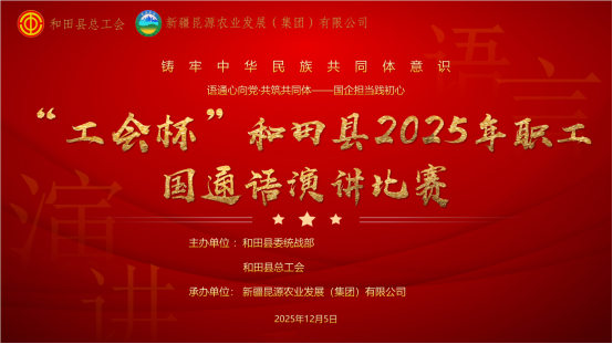 为提升职工国家通用语言文字水平,展现新时代职工综合素养与精神风貌,2025 年 12 月 5 日上午,由和田县委统战部、和田县总工会主办,新疆昆源农业发展(集团)有限公司承办的2025年 “工会杯”和田县职工国通语演讲比赛在公司大会议室顺利举行。公司的24名职工选手齐聚一堂进