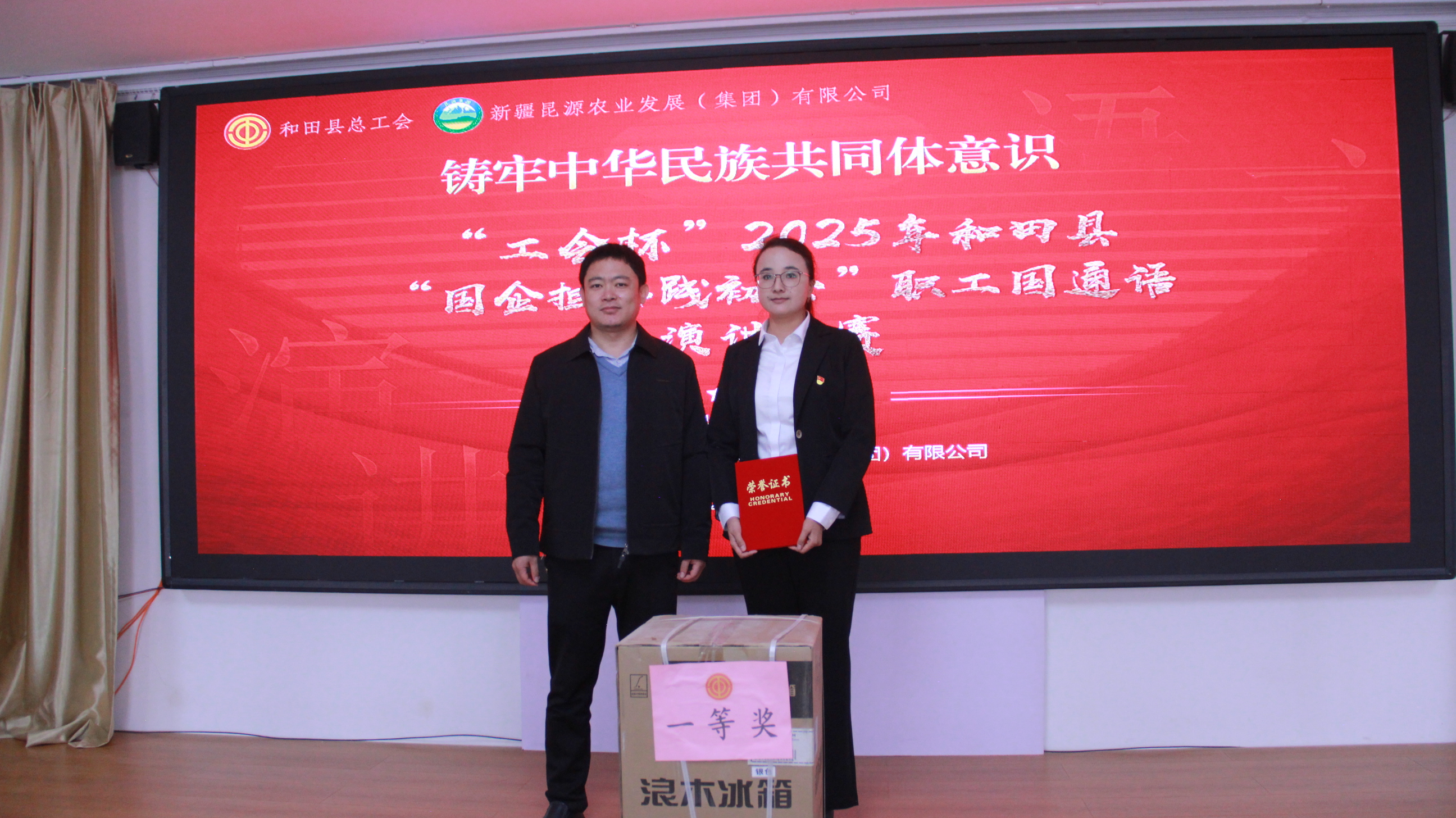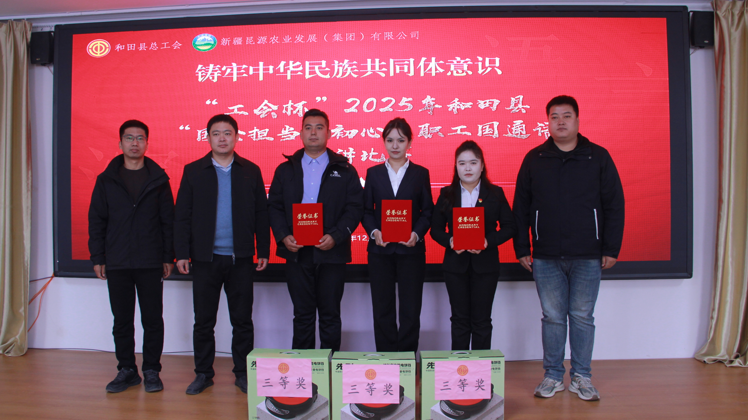 为提升职工国家通用语言文字水平,展现新时代职工综合素养与精神风貌,2025 年 12 月 5 日上午,由和田县委统战部、和田县总工会主办,新疆昆源农业发展(集团)有限公司承办的2025年 “工会杯”和田县职工国通语演讲比赛在公司大会议室顺利举行。公司的24名职工选手齐聚一堂进行最终决赛,以语言为桥梁,传递奋斗热忱,抒发职业担当。